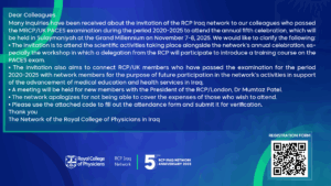 Invitation of the RCP Iraq network to our colleagues who passed the MRCP/UK PACES examination during the period 2020-2025October 14, 2025